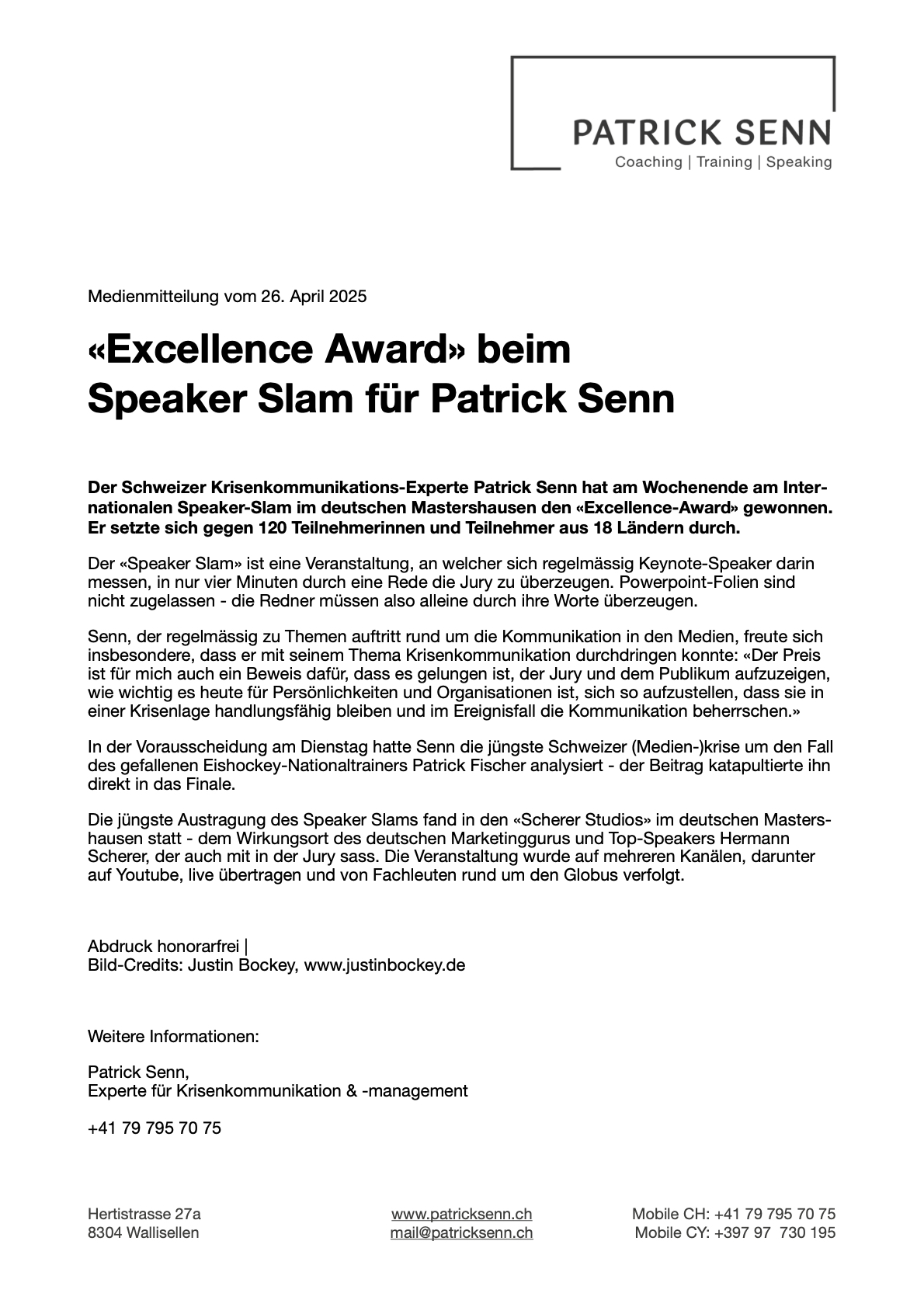 Ich freue mich, Dich in Deiner Berichterstattung zu unterstützen – sei es mit Pressetexten, Analysen zu aktuellen Krisenfällen oder Statements zu Auftritten von Prominenten.